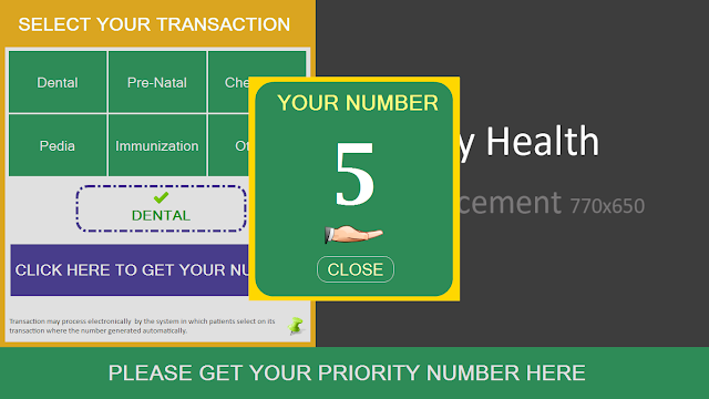 City Health Automated Queuing System offers a convenient way to serve patients electronically by way of generating the number sequentially. Click here to watch.